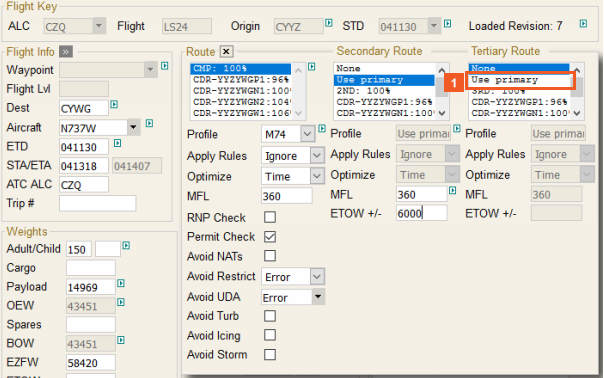 In this example, we will be adding 6000 lbs of weight to the original ETOW will affect the fuel burn without changing the route or flight level.