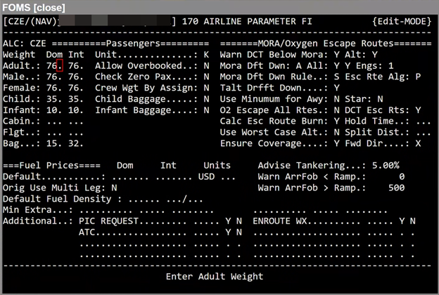 When enabled, crew members added to the crew list in NFP’s plan screen increase the BOW for the flight automatically based on the passenger weights set in FOMS 170. Removing crew from the list reduces the BOW accordingly. |