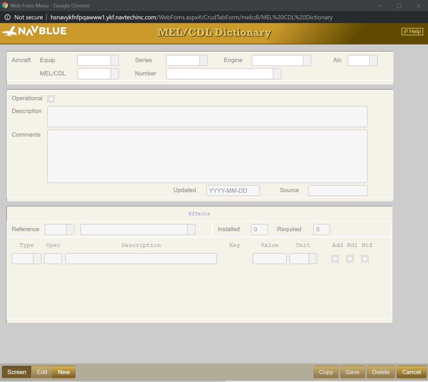 Note: You cannot edit the MEL/CDL number itself. If an item is incorrectly numbered, you have to delete and re-add it with the correct number.