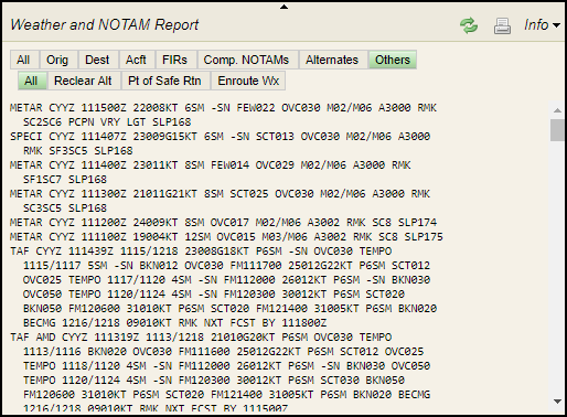 Station weather, displayed in the Other tab on the Info panel (see below example), is not shown for any station in this field. Weather information for the station is not included when building the flight package during the compute.