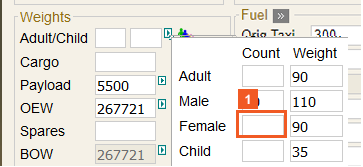 An ad hoc value can be entered here, or the system can automatically add the passengers and cargo.
