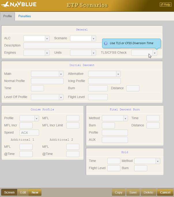 - That same ETP Scenario must match which of the time values are filled in for the aircraft (that is, if the user only wants to perform a TLS check, the scenario must be enabled for TLS and the aircraft must have a TLS time value)