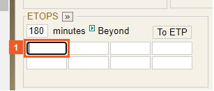 In this example, the ETOPS station is entered below. However, it is recommended to input the ETOPS station on the right after the initial field has been used and for all remaining entries of that line, and then use the input fields below.