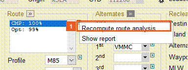 In the event that there are no city-pair routings available the system can be configured by NAVBLUE Support to automatically generate an optimized route. This function can generate a single "OPT" optimized route, or a route for each of the 3 available optimization methods.