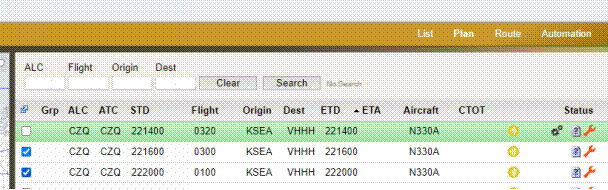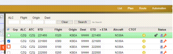 Automate: Clicking on this button places the selected flight into Automation mode. The flight will remain in Automation mode until the user places it into Manual mode, or an Automation Exception occurs. When the selected flight is in Automation mode, this button is disabled.