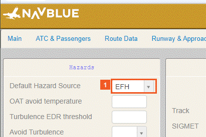 The Flight Hazard Data available sources are NONE = turned off, EFH, ERP, or UKH.