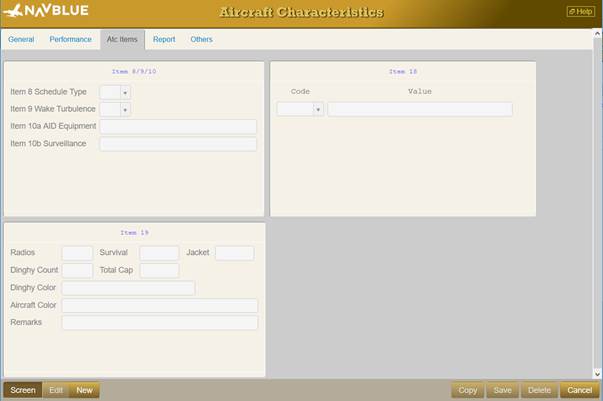 Aircraft Characteristics - Atc Items