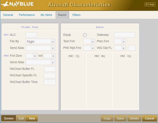 This is where aircraft specific ACARS details are stored and where you must enable ACARS before it can be used (Equip field).