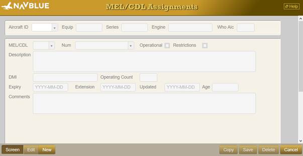Use this program to assign outstanding maintenance (MEL/CDL) items against a particular airframe so that whenever that aircraft is used by the Flight Plan program, the MEL assignment list with its corresponding descriptions display for the Dispatcher. In addition, when an aircraft is scheduled for a flight, the Dispatcher can review the list to see whether there are any operational restrictions that may have an impact on flight planning. For instance, some MELs may impose a limit on the maximum altitude to which the aircraft may be flown, and this should prompt the Dispatcher to cap the flight level used by the Flight Plan.