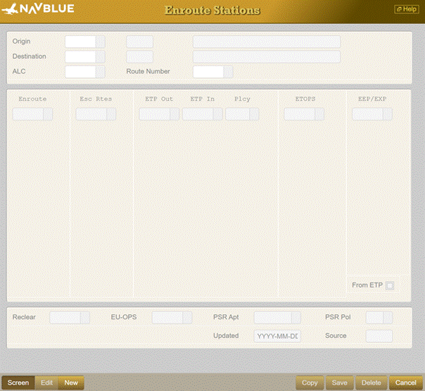 Use this program to control the data file that contains the list of enroute stations keyed to any city-pair. Note: The "Enroute" weather displays for the stations in the flight package, whereas the other stations default in the Plan screen.