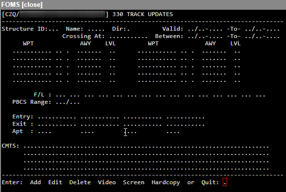 FOMS Menu 300 is the Database Maintenance Menu. It is the gateway to the routes and waypoints/airways databases, and other miscellaneous database programs.