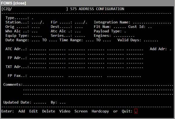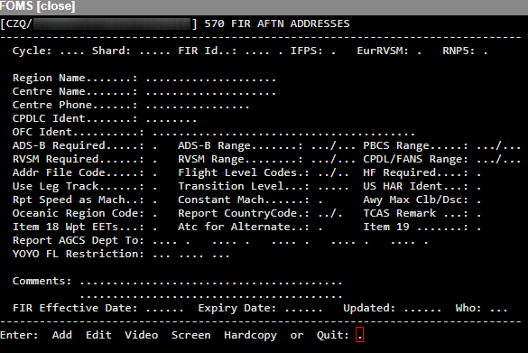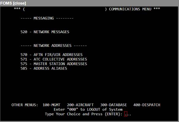 FOMS Menu 570 - FIR AFTN Addresses Program