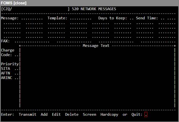 Message Priority Codes: The default priority codes for the SITA, ARINC, and AFTN networks are displayed immediately to the left of the message block. Should you need to change any of these, you may do so by using the up arrow to back up from the first line of the header text.