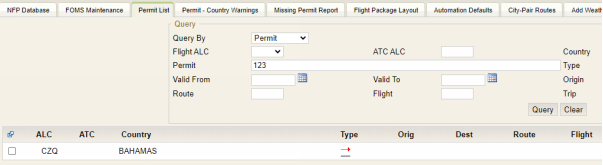 Use this screen to search for permits. Enter as many values in the fields to narrow down your search. Click the Query button with all fields empty to return all permits in the system.