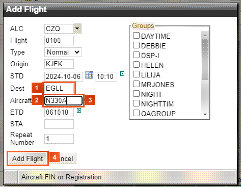 Once you have these fields filled out click anywhere to open the Add Flight dialog.