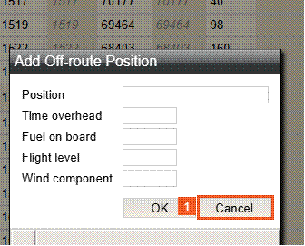 Adding an off-route position, will not affect the projected values for any other positions already in the list. The progress list will automatically refresh the actual/projected values of existing positions that might have changed for other reasons, such as ACARS reports, or other users potentially working on the same flight.