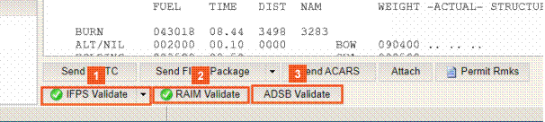 The IFPS, RAIM, and ADSB Validation buttons in the Reports Screen allow for a manual trigger of the validation process.