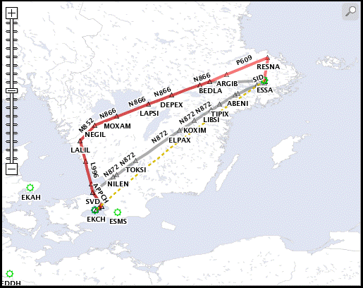 You can see on the map screen that the route optimizer follows the rule of avoiding the ESAA FIR and built a route around it.