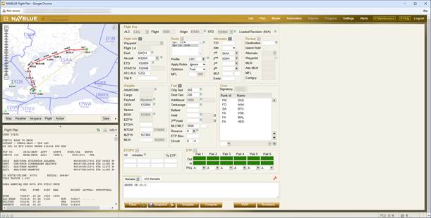 The selected IFPS Route appears in blue on the map screen. Click Apply to continue working on your Flight Plan.
