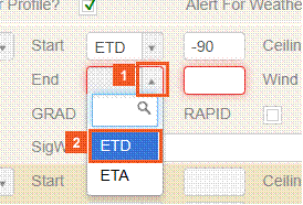 Forecast exclusion options are available to instruct the system to ignore TAF type GRAD, RAPID, INTER, FM, TEND, BECMG, or TEMPO.
