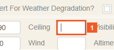 CEILING: Enter the ceiling threshold in feet. Alerts are triggered below this threshold value.