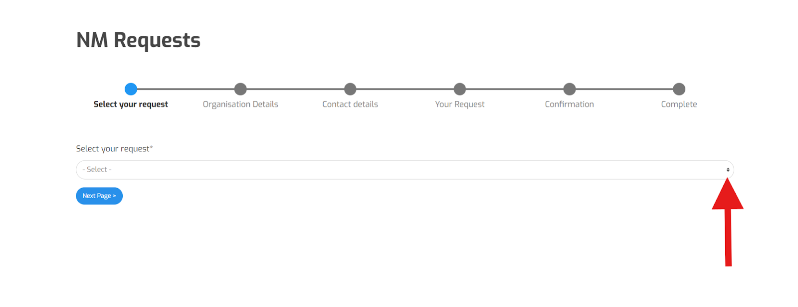 Once on the page, select the dropdown menu on the right (as shown by the arrow below).