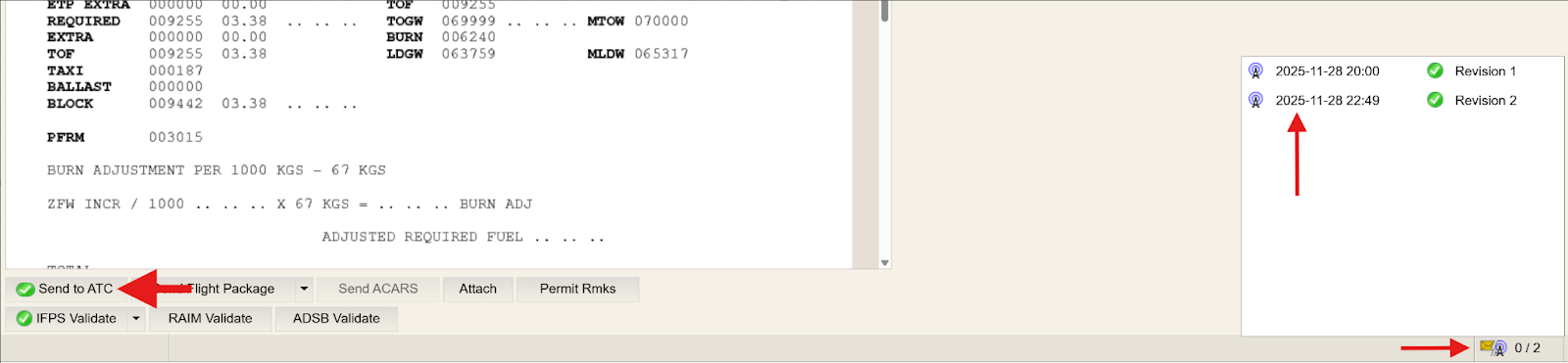 When ready to submit a Flight Plan change to NM, click the Send to ATC button.