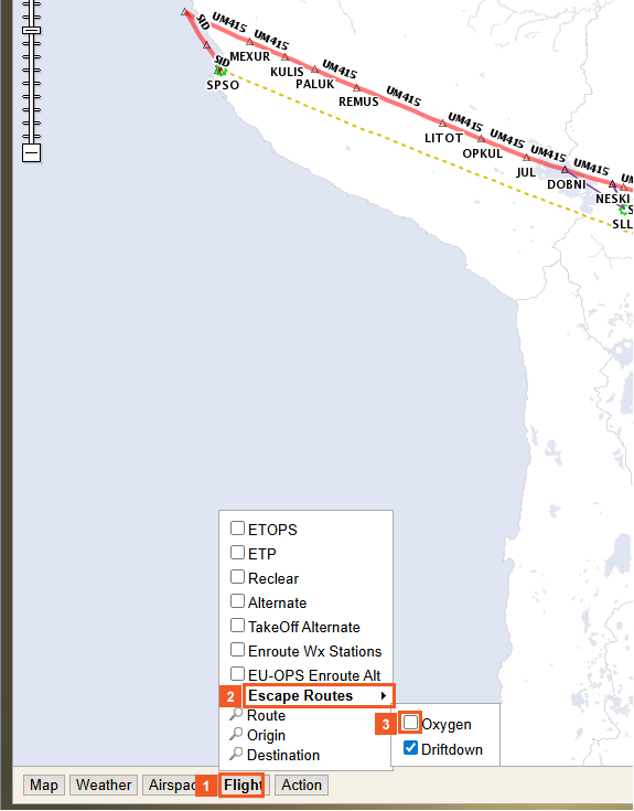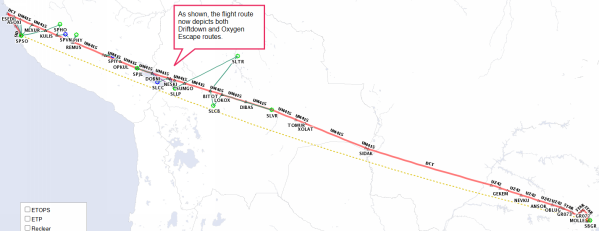 As shown, the flight route now depicts both Driftdown and Oxygen Escape routes.