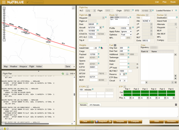 For this example, the Flight Plan scroll bar has been scrolled down to display the applicable Escape routes.
