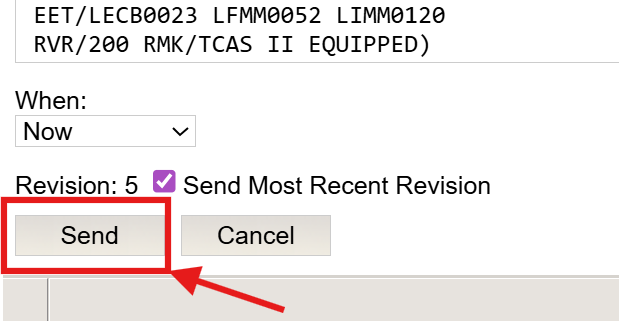 STEP 3: File revised eFPL to NM by selecting SEND TO ATC.